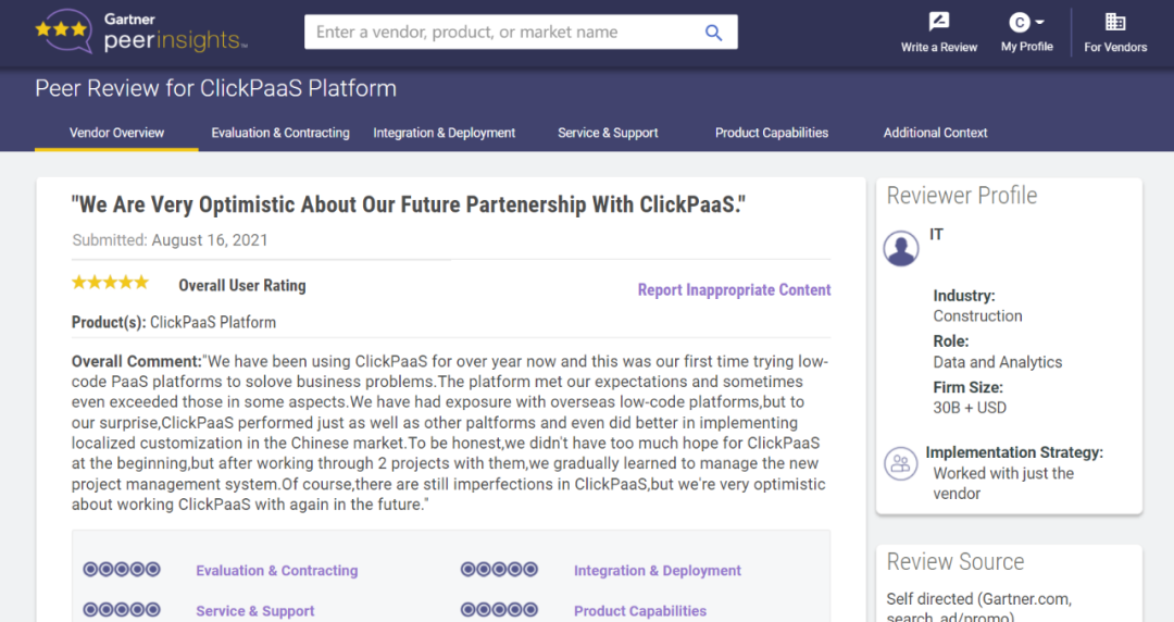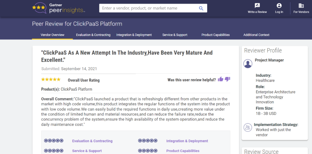 Tips::::【Peer Insights】——用户对企业IT产品和服务发布真实评价的平台。。。。目前已有355个市场,,,,255,000条经过验证的评价。。。。每一条评价Gartner会针对参评企业营收规模及参评人员信息做验证、、、评价内容做多维核实。。